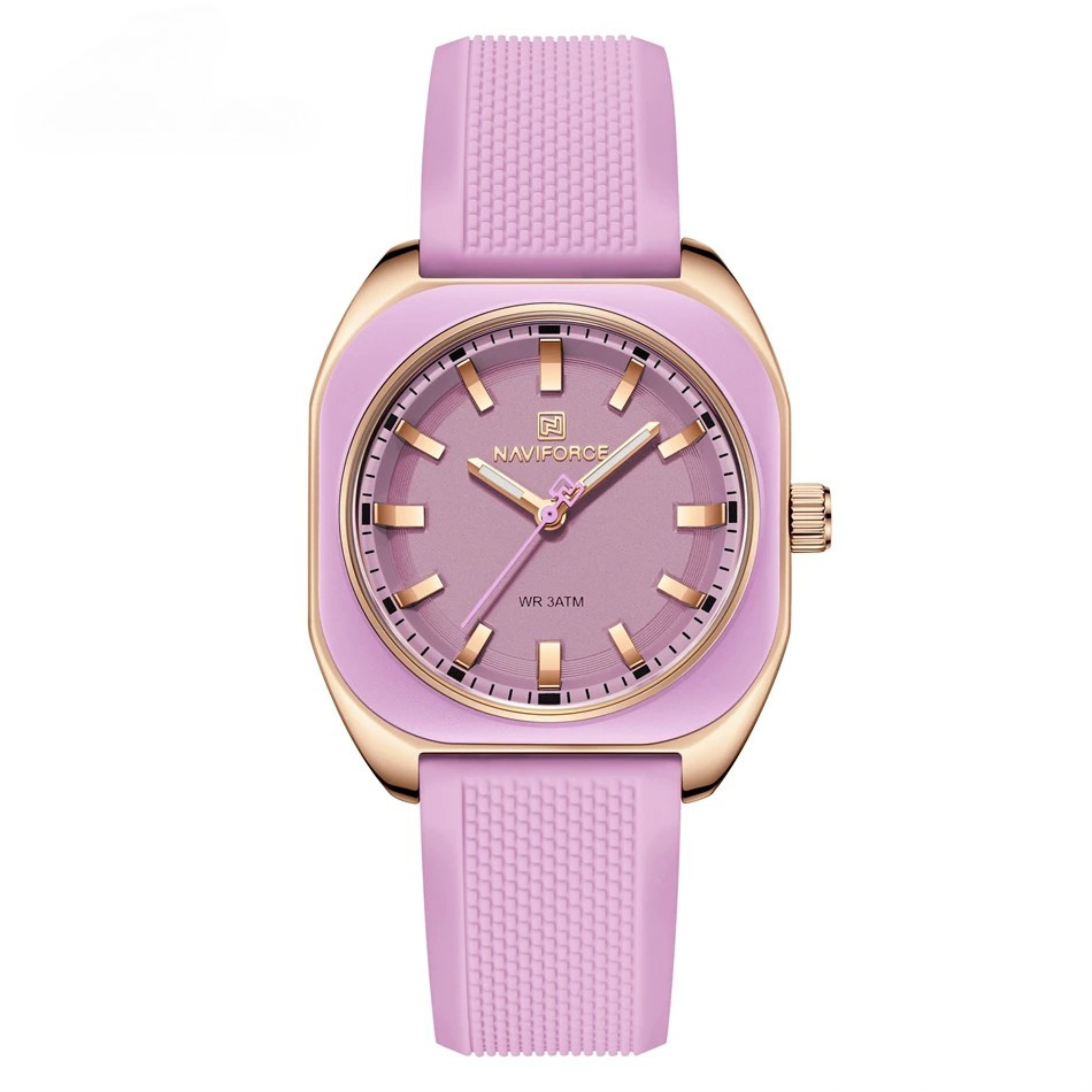 Encased in a sleek rose gold-tone frame, this timepiece features a bold yet minimalist dial with luminous markers for enhanced visibility. The ultra-comfortable silicone strap ensures a perfect fit for all-day wear, while a range of refined color choices make this watch your perfect companion for work, leisure, and beyond.